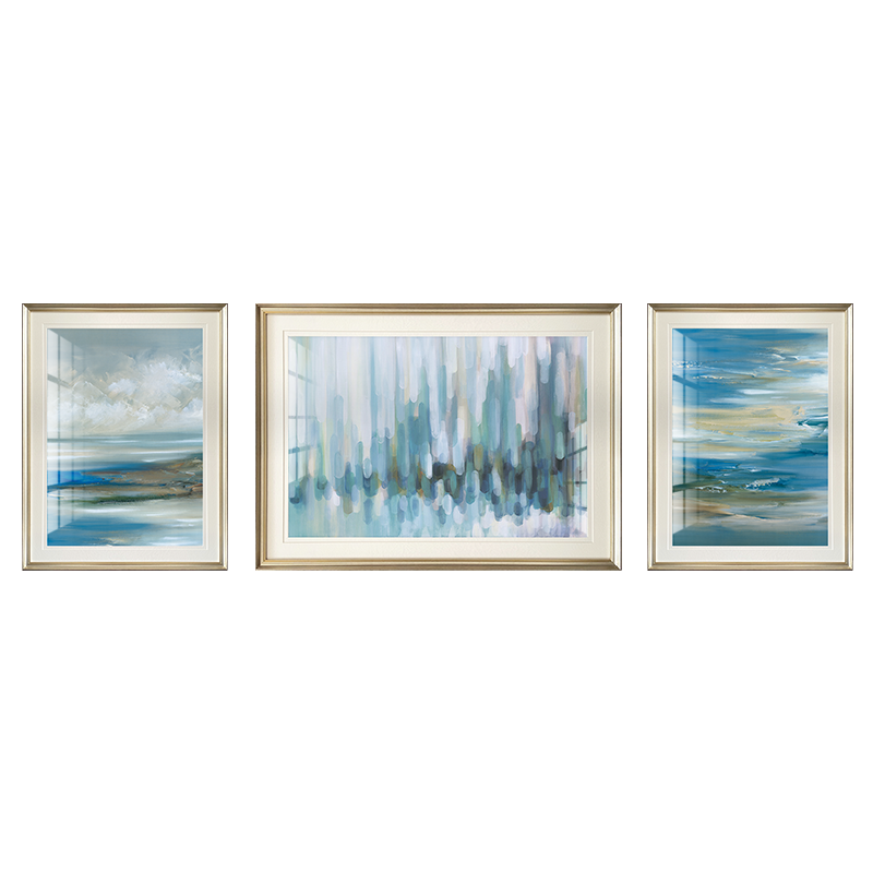 現代美式裝飾畫組合畫輕奢簡美抽象畫簡歐三聯畫客廳沙發背景牆面